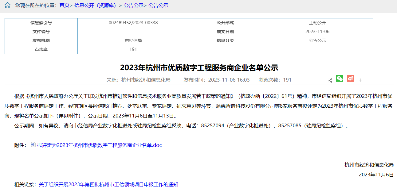 市经信局组织开展了2023年杭州市优质数字工程服务商评定工作,欧博游戏平台|中国有限公司官方网站获评杭州市优质数字工程服务商企业。