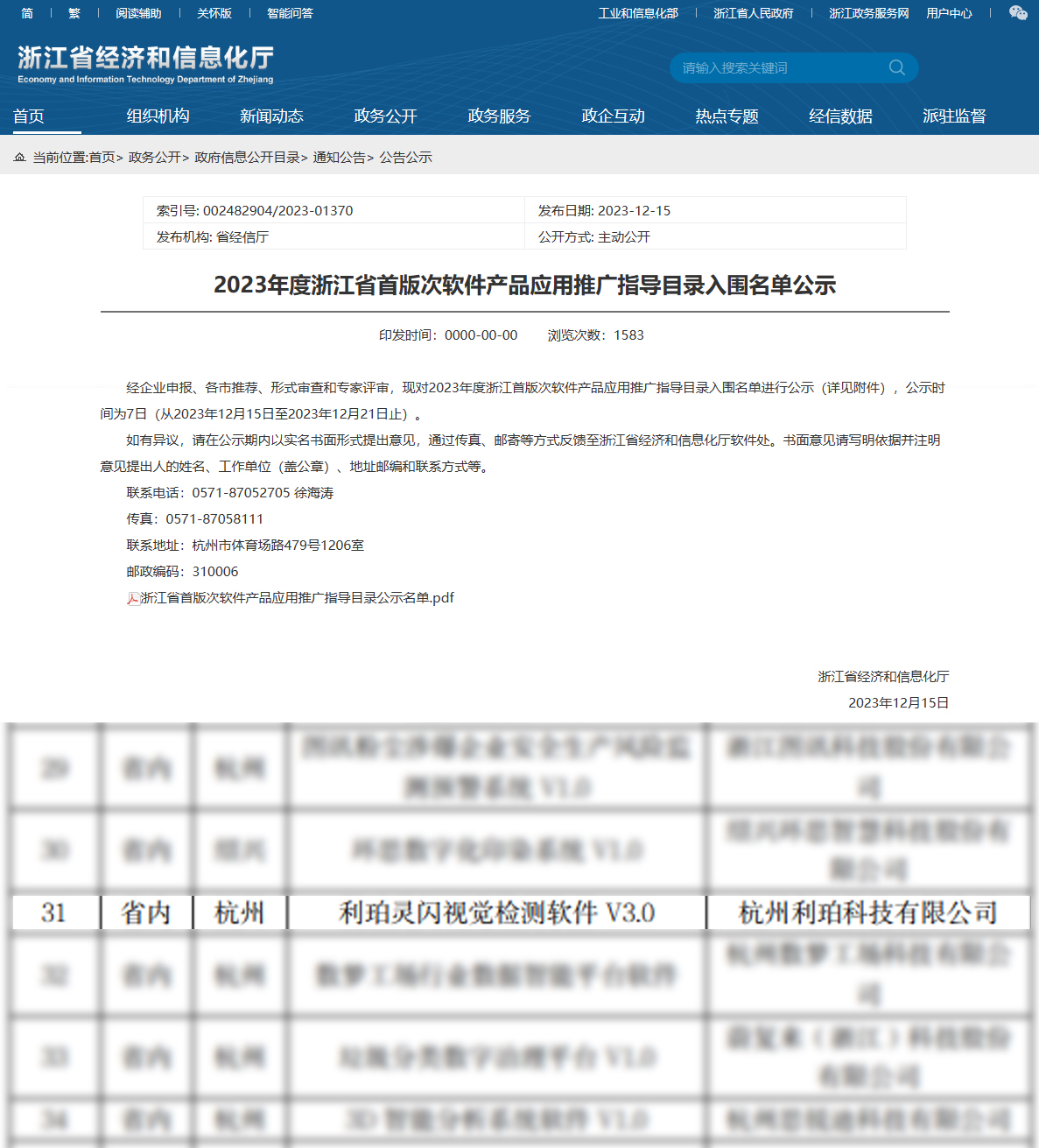 12月22日,经企业申报、各市推荐、形式审查和专家评审,欧博游戏平台|中国有限公司官方网站“利珀灵闪视觉检测软件V3.0”成功入选2023年度浙江省和杭州市首版次软件产品认定名单。此次入选,标志着利珀在软件领域的再一次突破,技术优势以及研发成果获得了省、市级专家的高度认可。